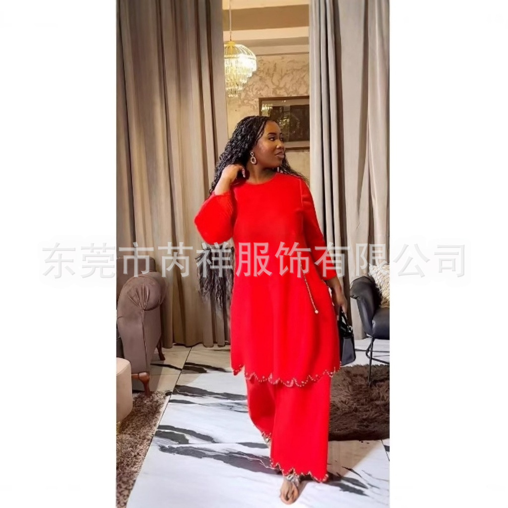 Gaun jubah TikTok lintas batas, mantel wanita populer Timur Tengah Turki warna solid ukuran besar, kardigan perdagangan luar negeri set 2 potong