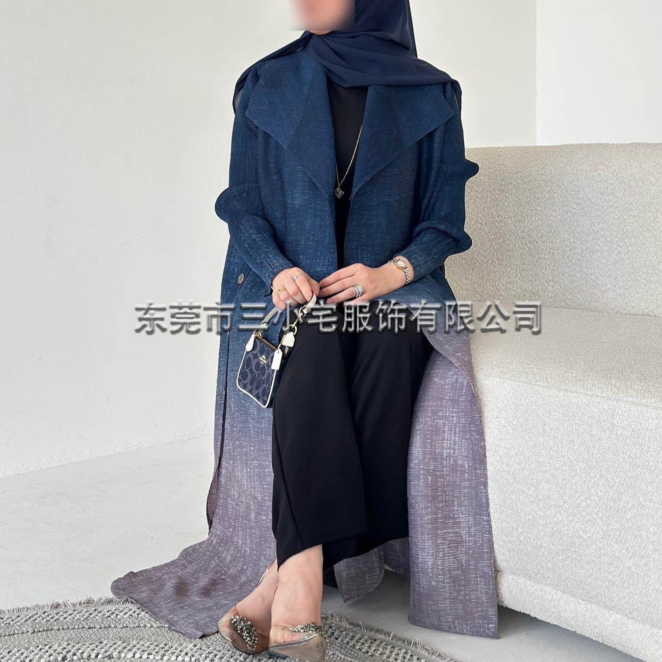 三宅渐变色侧边中东风衣外套钉扣穆斯林时尚开衫直播爆款现货长袍