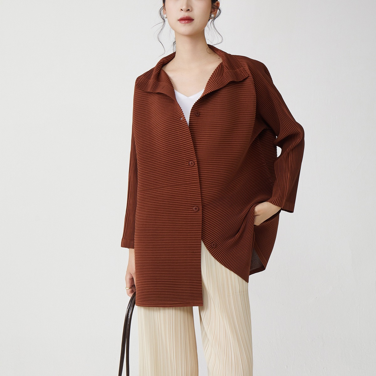 大牌专柜同款2025开春外套女春秋三宅高级感褶皱开衫上衣大码女装