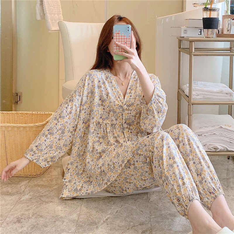 Piyama sutra katun wanita, pakaian rumah kardigan katun sutra tipis Internet selebriti musim panas ukuran besar
