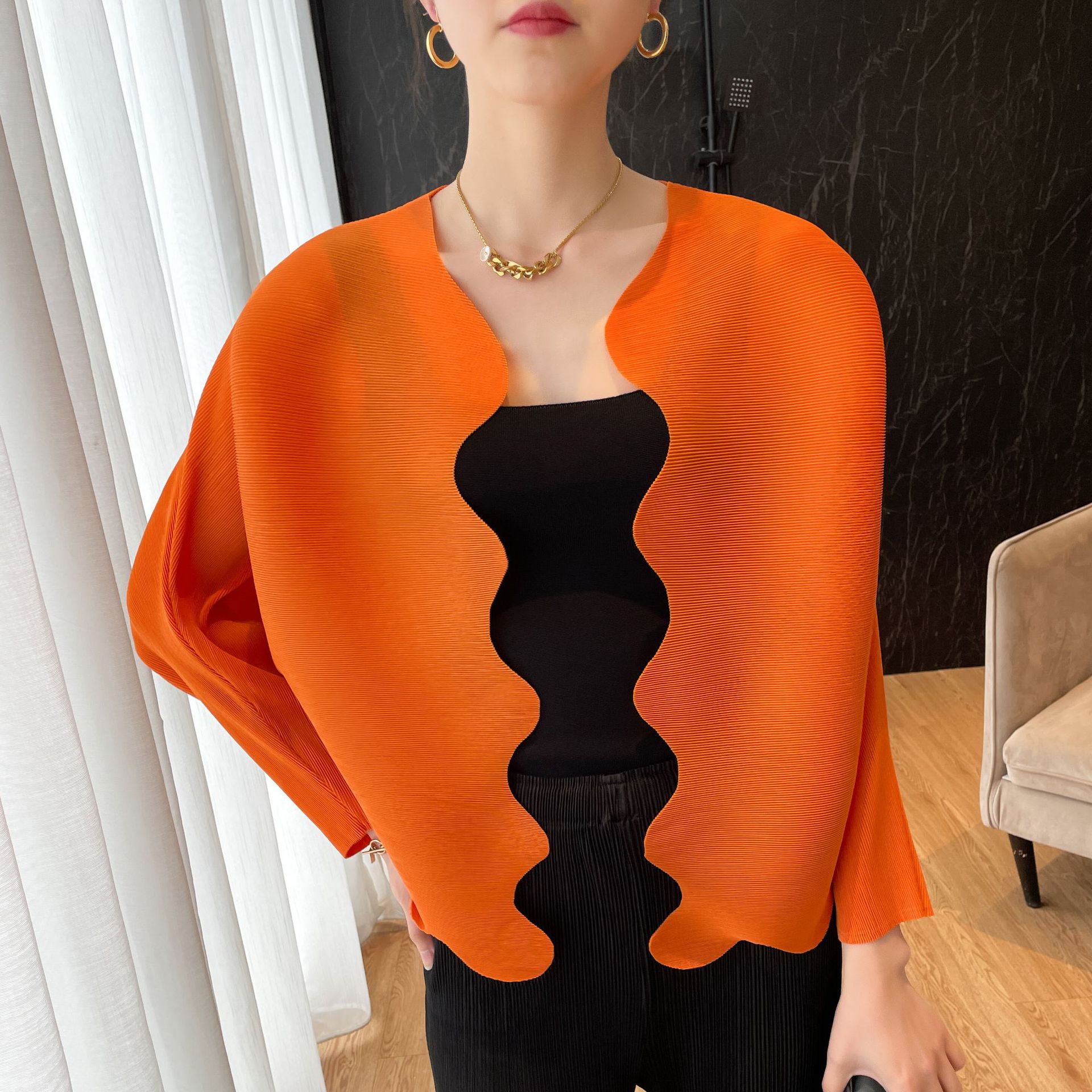 Counter cardigan Lengan kelelawar kasual serbaguna, pakaian luar lipit longgar lengan kelelawar 2024