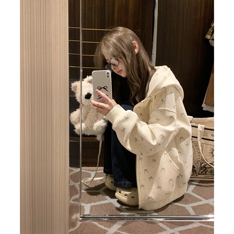跨境复古少女感bm风卫衣外套女春秋薄款连帽开衫慵懒风上欧美风