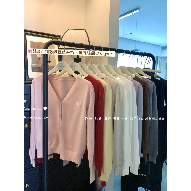 Atasan Rajut Satu Bit Kerah V Bordir Dopamin Awal Musim Gugur 2024 Modis Pakaian Wanita Kardigan Kasual Mudah Dipadu Padan