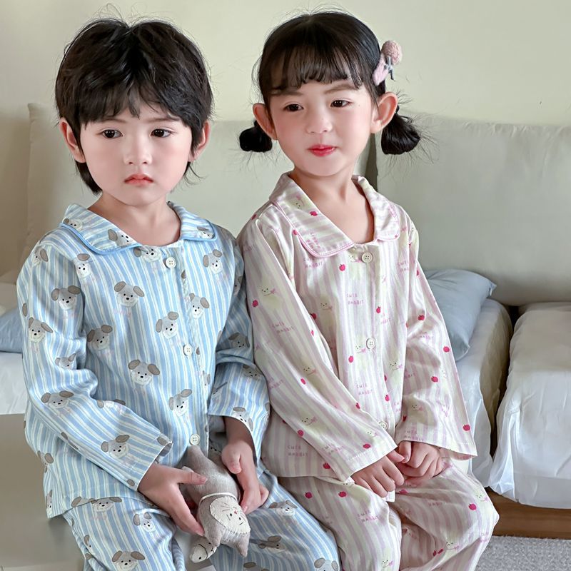 儿童家居服春秋全棉可外穿开衫套装宽松保暖男童女童可爱睡衣裤韩