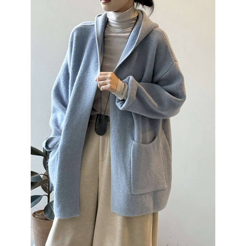 言双 连帽慵懒风毛衣外套女 秋冬气质宽松高级感外穿针织开衫P227