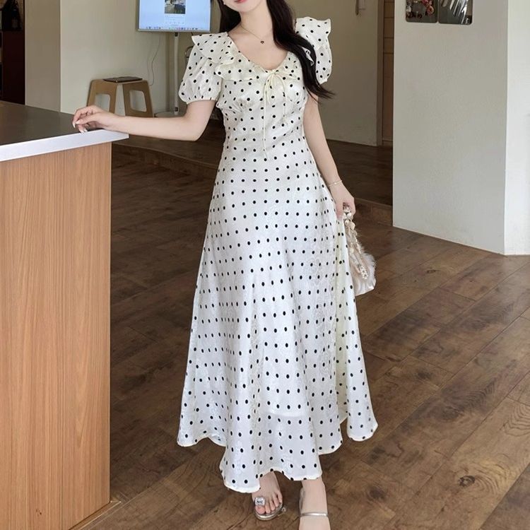 Gaun Polk Polk Gaya Perancis Gaya Lembut Ukuran Besar Rok Warna Aprikot Terlihat Langsing Pinggang Model Baru Musim Panas 2025 Wanita
