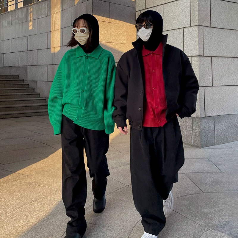 MYQ sweter rajut pria, gaya malas tebal musim gugur dan musim dingin mantel hangat gaya Korea longgar kerah kardigan rajut pasangan