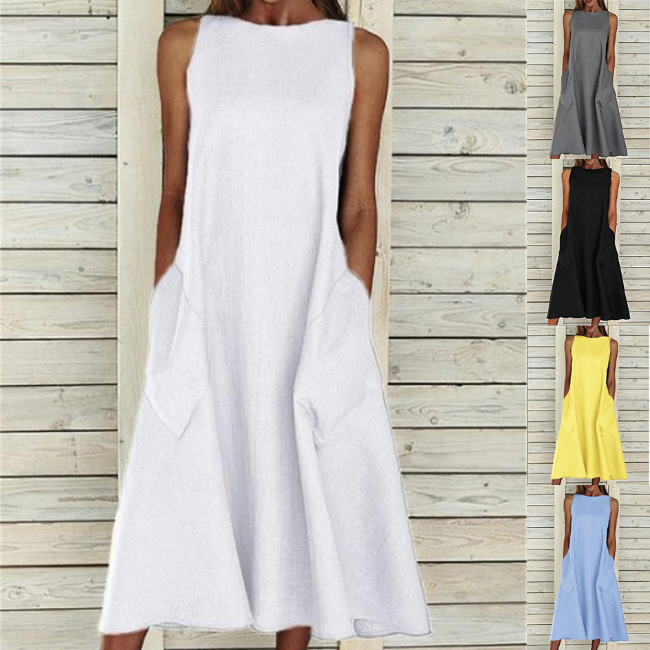 Gaun Katun Linen Warna Putih Ukuran Besar Tanpa Lengan Panjang Kerah V Dalam Model Baru Musim Semi Musim Panas 2023