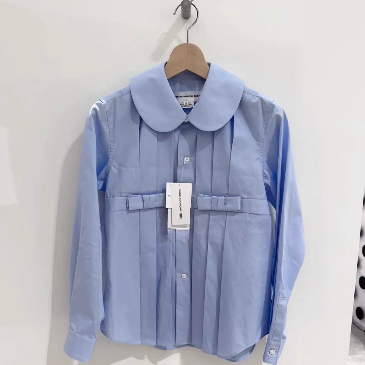 CDG KZYU 25春夏日系新款娃娃领压褶衬衫长袖开衫宽松衬衣女款潮