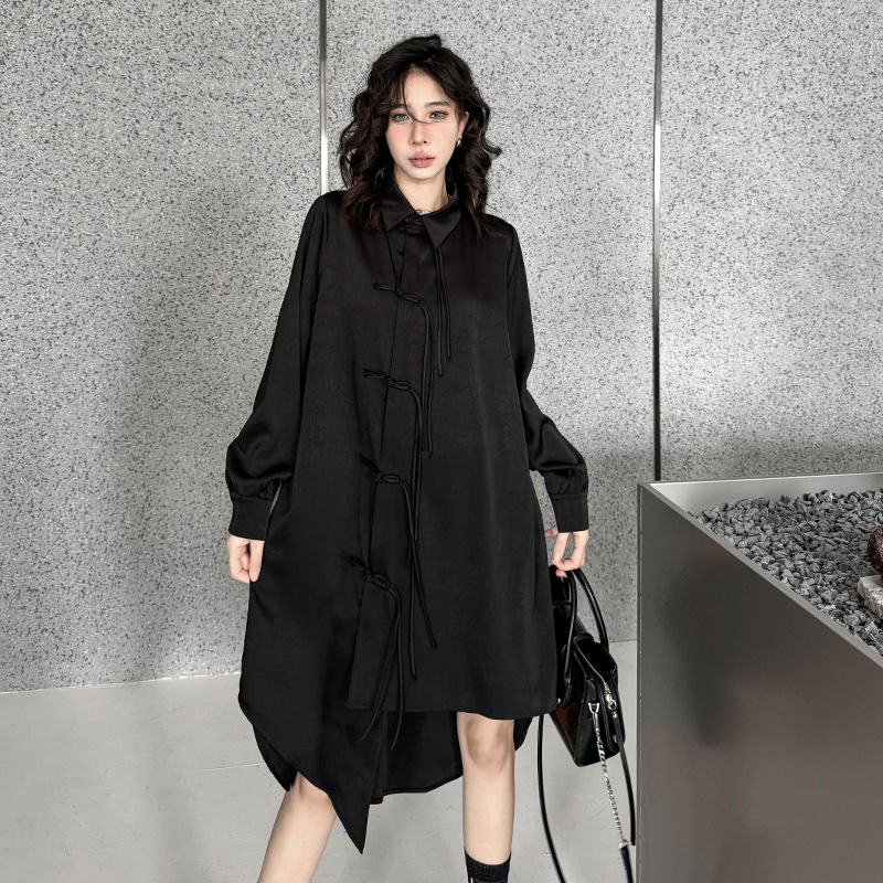 Gaun kemeja wanita model Cina terbaru, gaya nasional musim semi dan gugur 2025, model gelap, ukuran besar, potongan longgar.