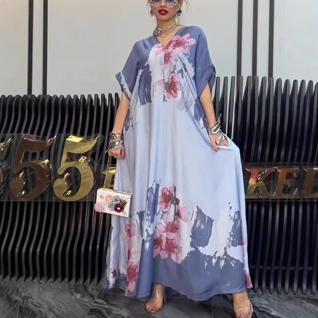 Rok Panjang Longgar Ukuran Besar Gaun Cetak Kasual Modis Model Baru Lintas Batas Eropa dan Amerika Amazon Musim Panas 2025
