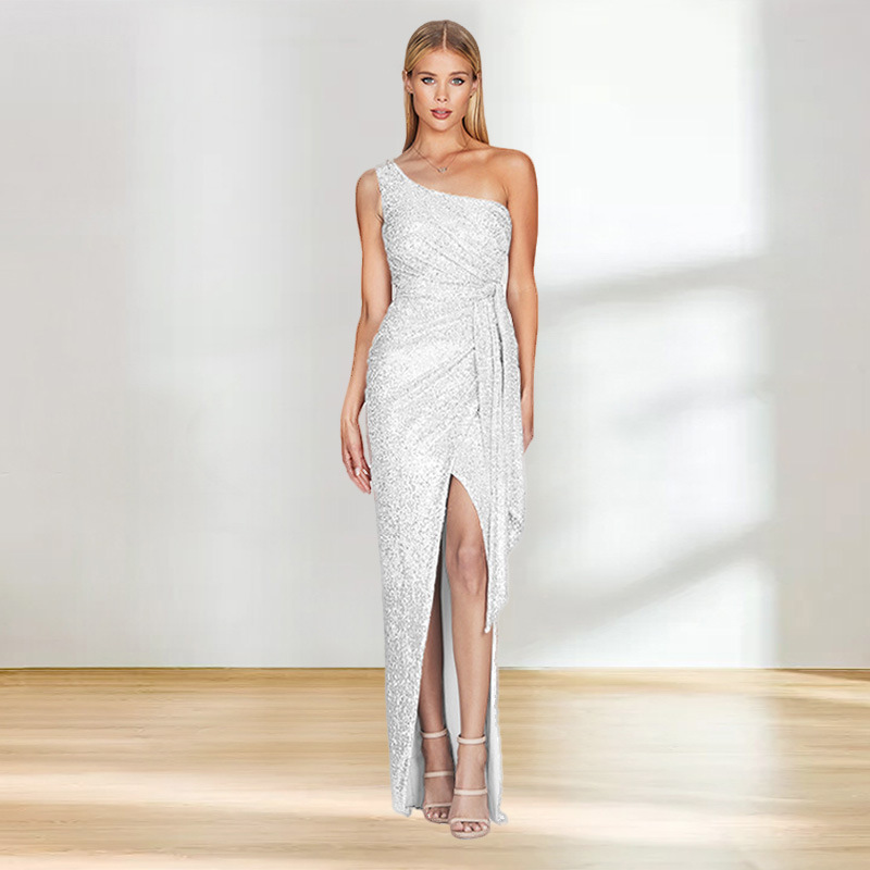 Gaun payet bahu terbuka wanita perdagangan luar negeri Eropa dan Amerika musim panas gaun wanita split tanpa lengan Amazon
