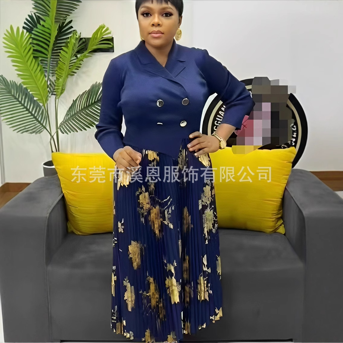Pakaian Wanita Ukuran Besar Afrika Gaun Lipit Tiga Rumah Gaun Panjang Rok Lipit Gaya Liburan Model 2025 Rasa Premium Ringan Mewah