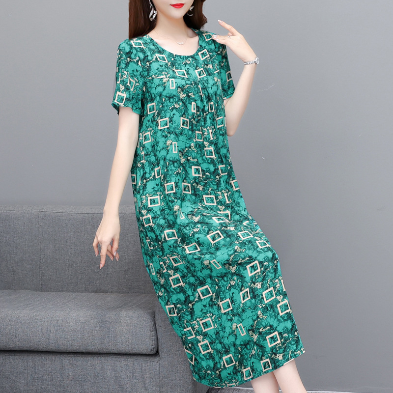 Gaun lengan pendek ayun besar, pakaian wanita usia sedang dan tua untuk musim panas ukuran plus 240kg