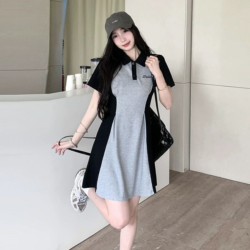 Gaun Terlihat Langsing Pinggang Lemak Ukuran Besar Model Baru Musim Panas 2025 Rok Modis Mudah Dipadu Padan Warna Kontras Warna Simpel