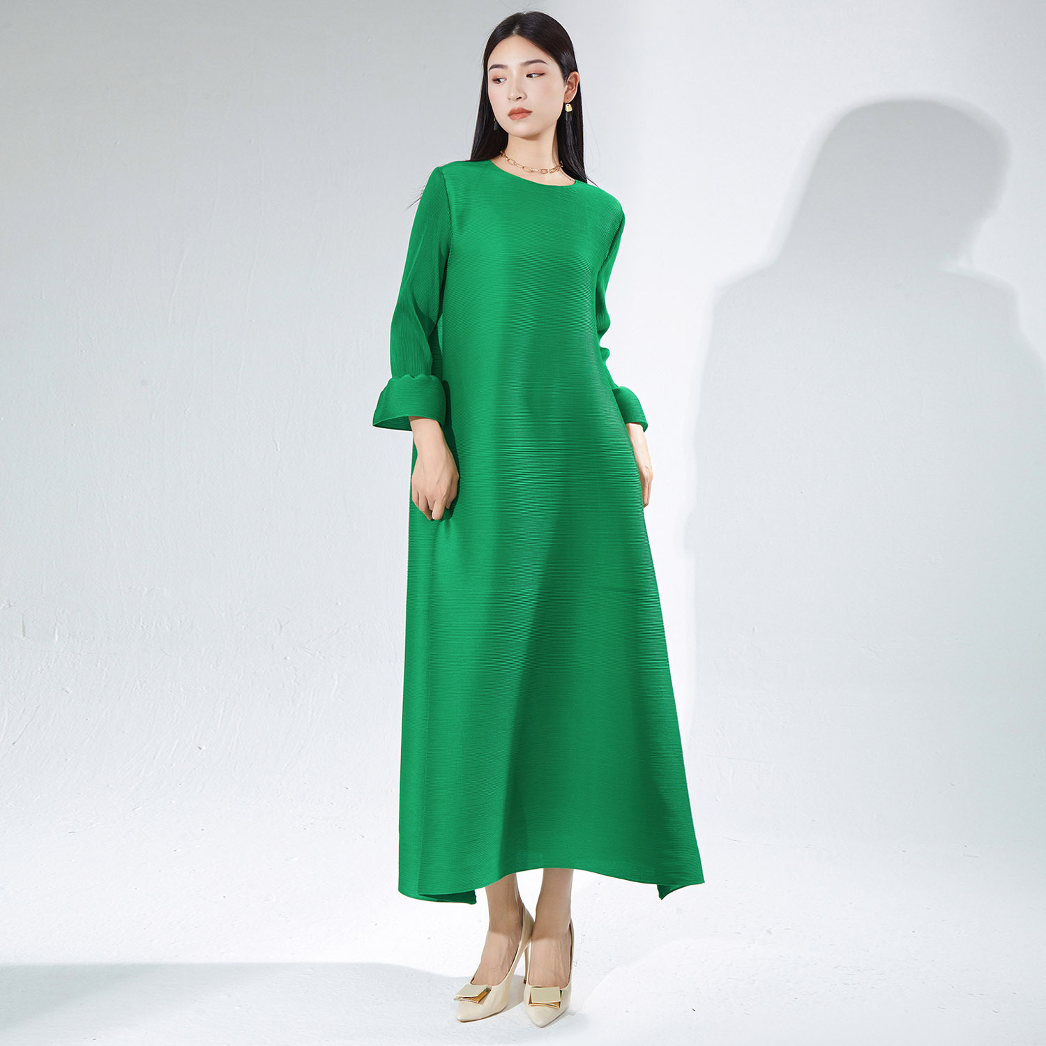 Sanzhai gaun wanita kelas atas longgar ukuran besar modis temperamen musim gugur wanita baru gaun berlipat barang Eropa