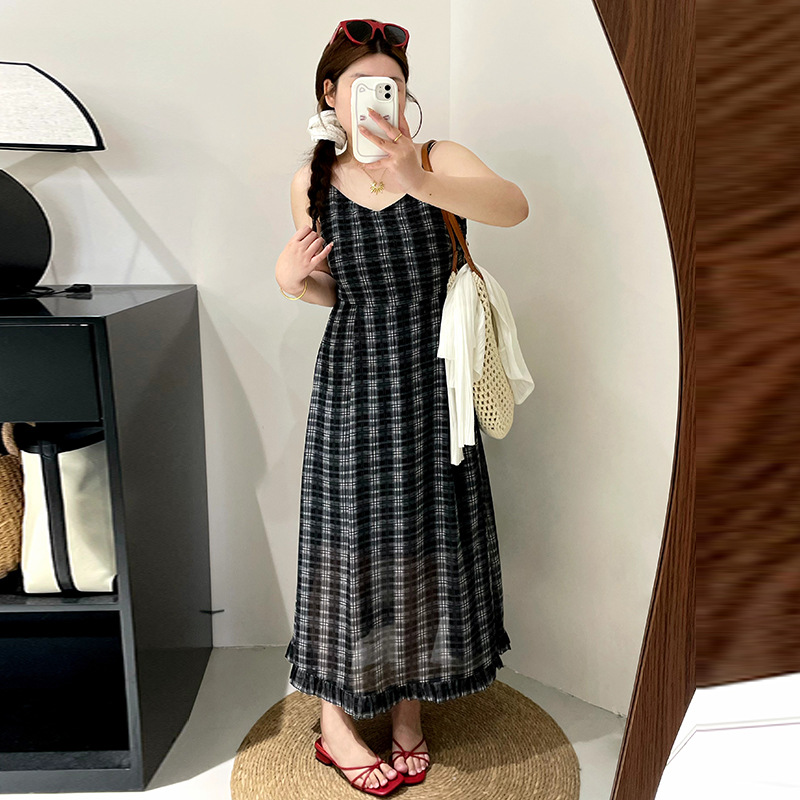 Gaun Suspender Ukuran Besar Lintas Batas Wanita Model Korea Musim Panas Wanita Gemuk Menutupi Perut Terlihat Langsing Rok Super Panjang Ke Pergelangan Kaki Trendi