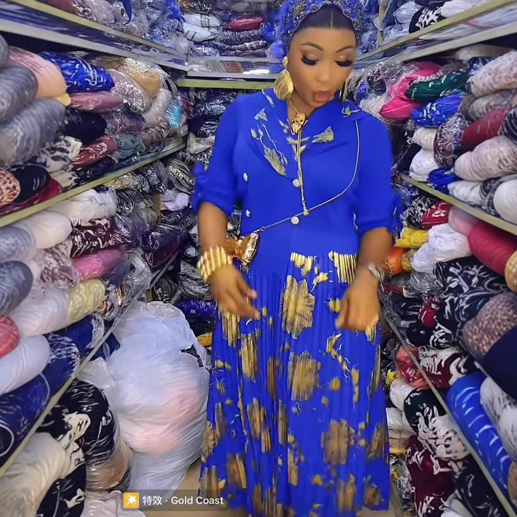 Miyake Perdagangan Luar Negeri Model Baru 2025 Gaun Wanita Grosir Musim Semi Ukuran Besar Modis Kasual Bersablon Emas