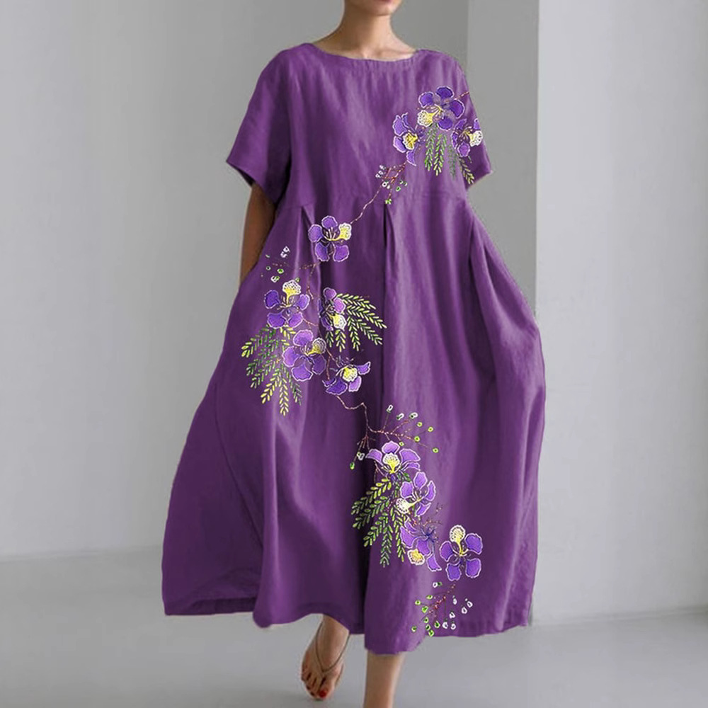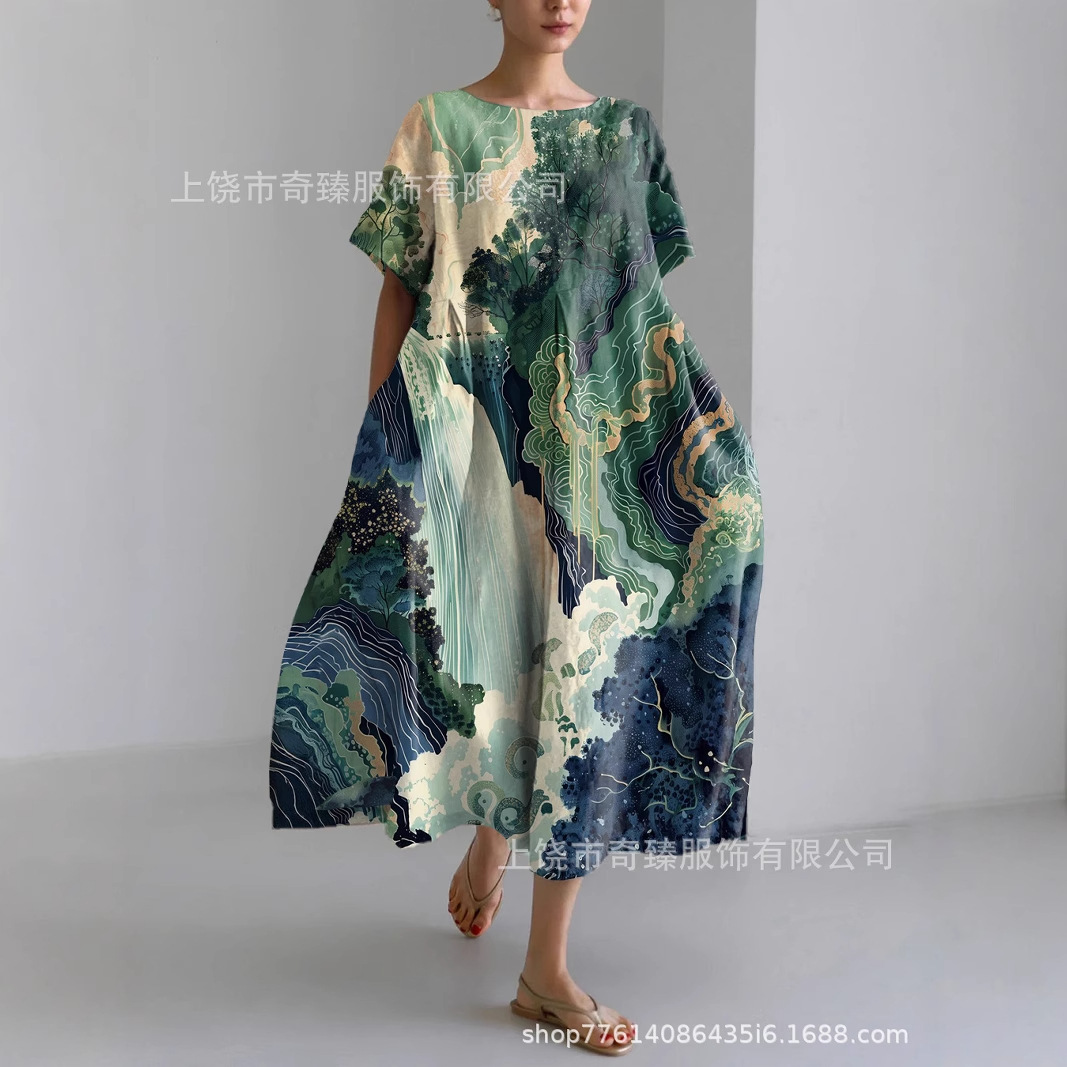2024 rok baru wanita Amazon Eropa dan Amerika lintas batas ukuran besar gaun ayun besar lengan pendek cetak bunga musim panas
