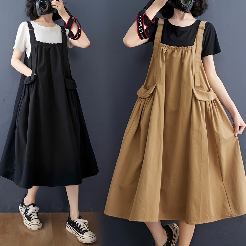 Rok Tidur Warna Polos Longgar Saku Ibu Musim Panas Setengah Baya dan Setengah Baya Ukuran Besar
