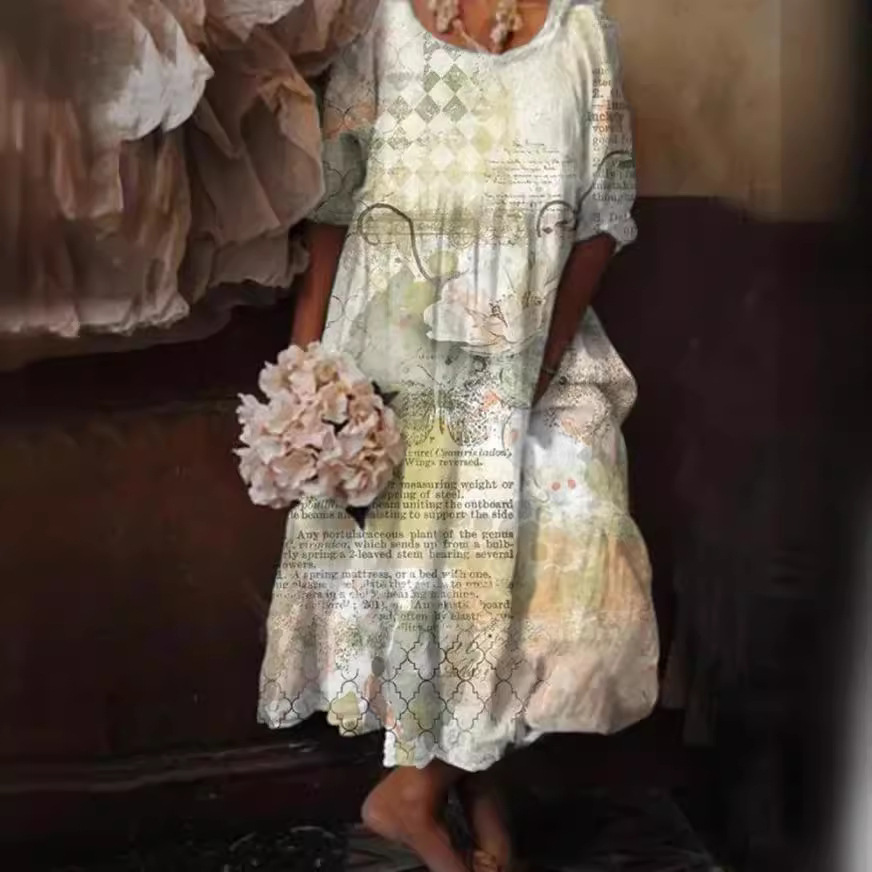 Gaun panjang bermotif untuk wanita, Gaun stasiun ahli independen kasual modis Musim Panas 2024, gaun panjang longgar bertali ukuran plus