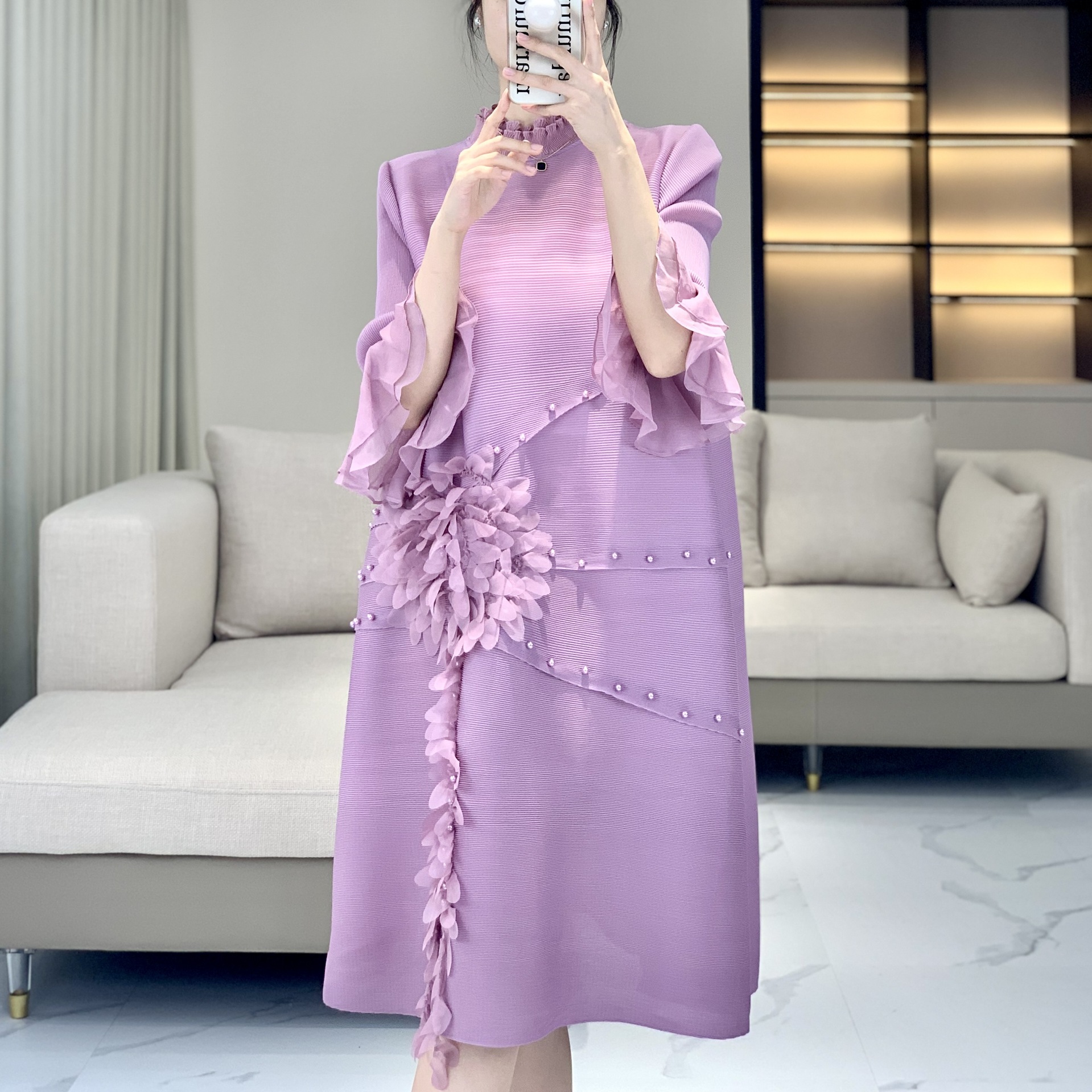Gaun berlipat industri berat, kelas atas 2024 ibu kecil baru musim semi dan musim panas rok elegan gadis gemuk ukuran plus wanita