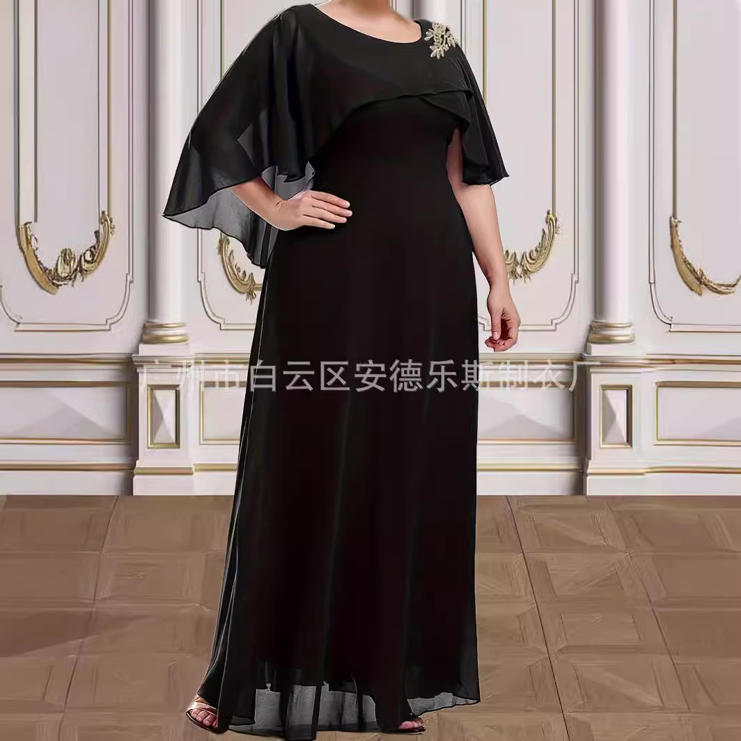 Gaun sifon wanita ukuran besar Eropa dan Amerika, modis dan elegan, gaun situs independen Amazon lintas batas, pakaian ibu, penjualan laris