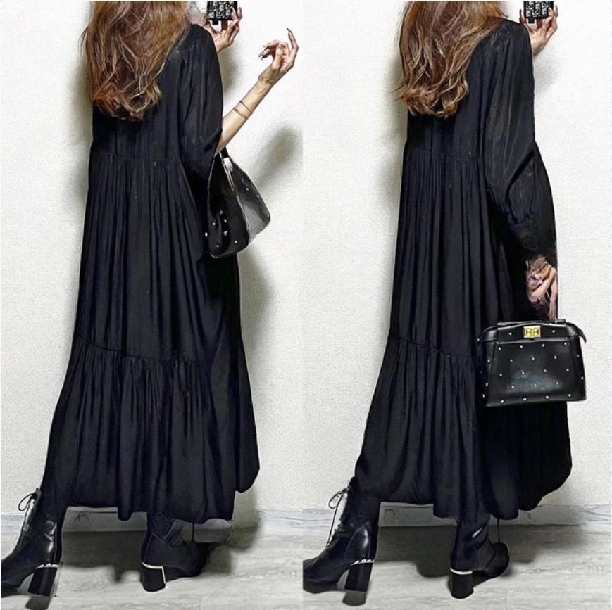 Gaun lengan pendek wanita, Bawahan rok panjang dengan kancing tipis longgar ukuran plus warna solid