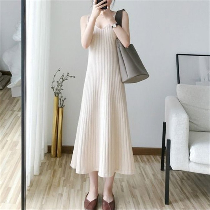 Gaun kamisol rajut ukuran Plus, rompi rok panjang, sweater Dalaman setengah panjang, rok Bawahan longgar gemuk musim gugur dan musim dingin untuk wanita
