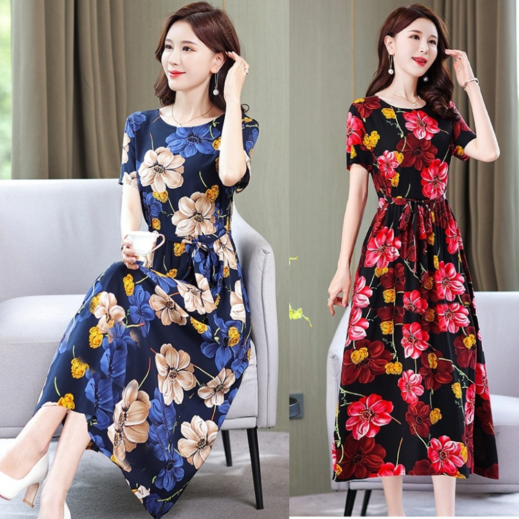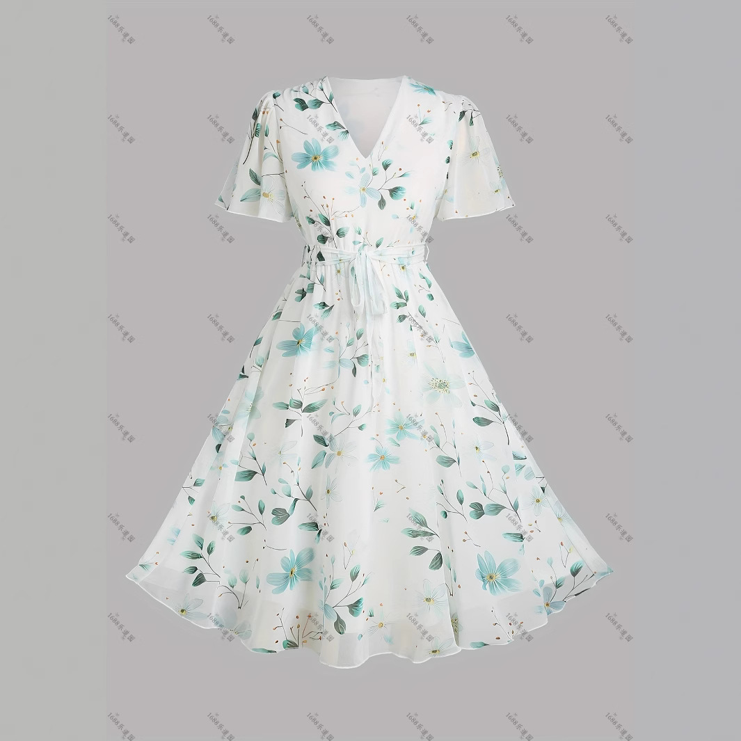 Pakaian Wanita Ukuran Ekstra Besar Gaun Modis Unik Chic 2025 Rok Bunga Mengurangi Usia Musim Panas Model Baru Menutupi Perut