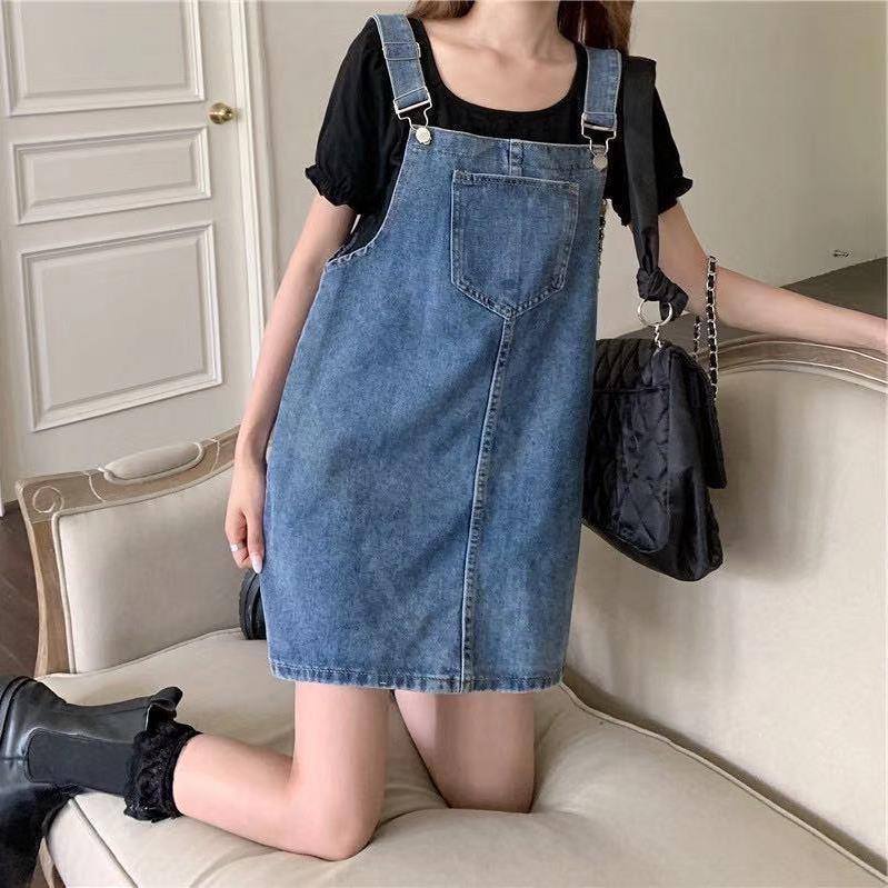 Gaun wanita ukuran Plus, pakaian wanita musim panas baru, rok suspender Denim, rok pendek suspender pengurang usia, pelangsing longgar, rok wanita gemuk, pakaian wanita musim panas ukuran besar