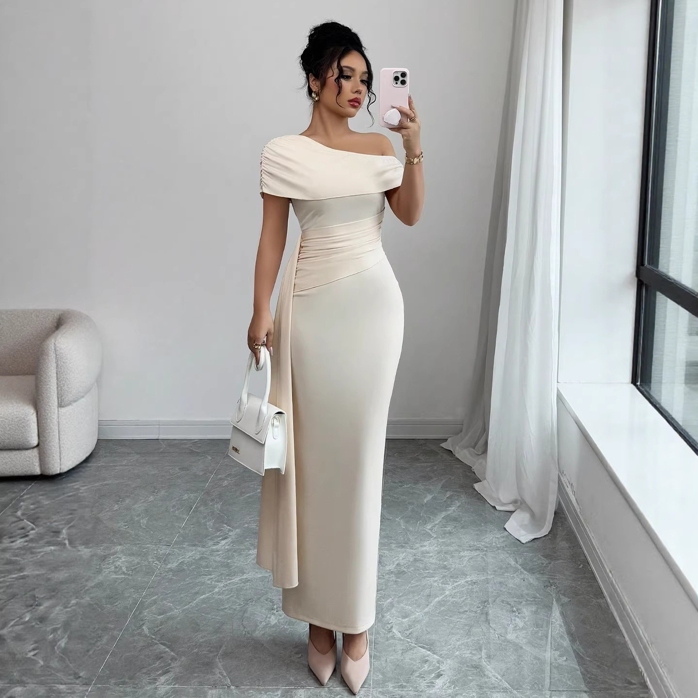 Gaun pesta panjang model baru musim gugur dan musim dingin 2025, gaya Eropa dan Amerika, impor Amazon, dengan detail emas dan belahan.