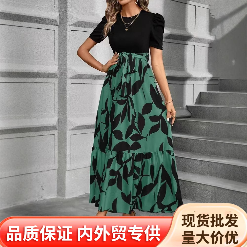 Amazon AliExpress Border Khusus untuk Pakaian Wanita Eropa dan Amerika Gaun Elegan Elegan Modis Pinggang Tinggi Motif Bunga