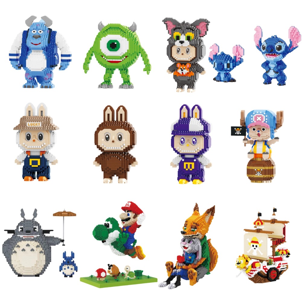 LP miniatur mainan perakitan gambar perakit blok bangunan partikel kecil seri kartun Mary Yao West Blue fat man grosir