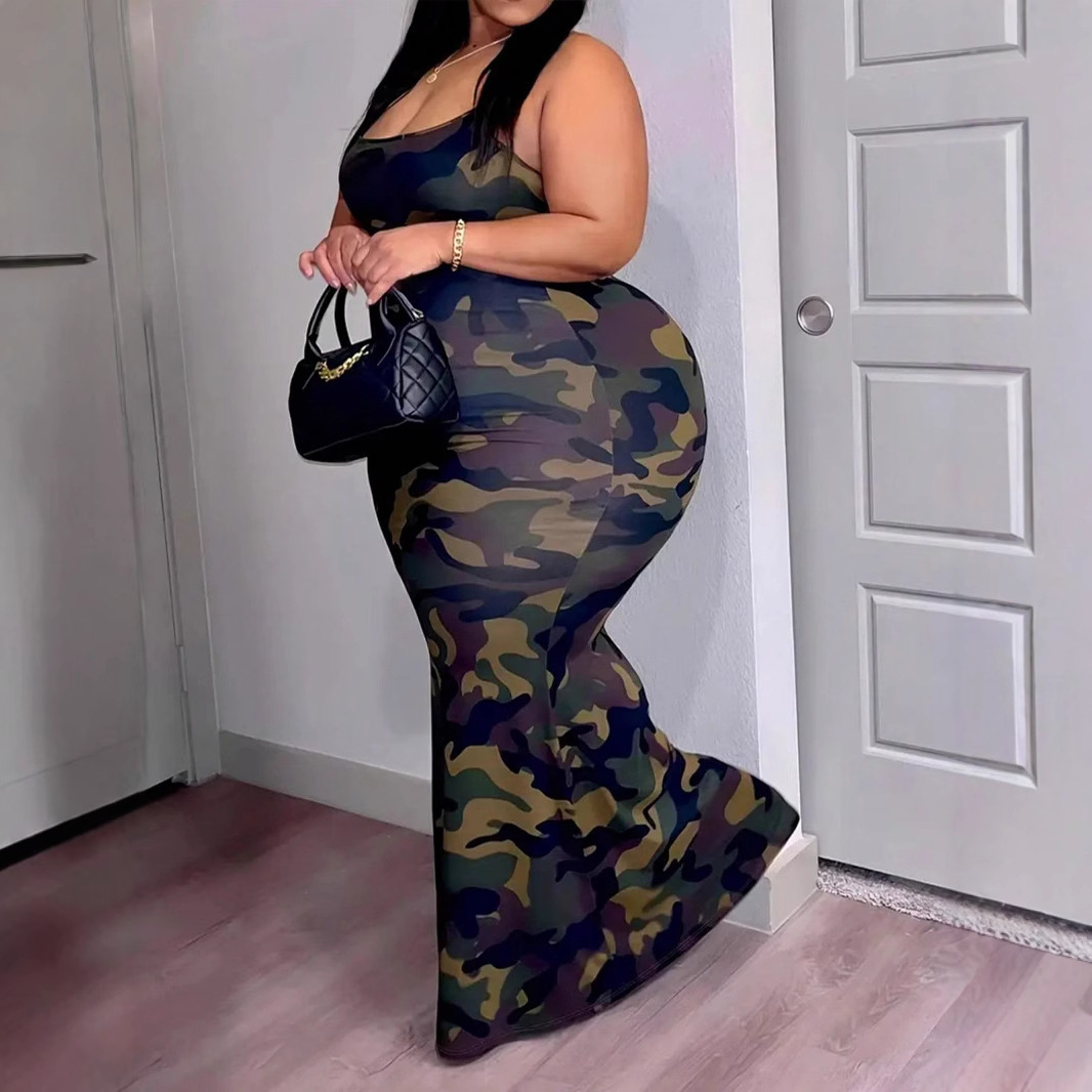 Gaun Kamuflase Musim Semi dan Musim Panas Anggun Amazon Model Baru Cross-Border 2025 Eropa dan Amerika