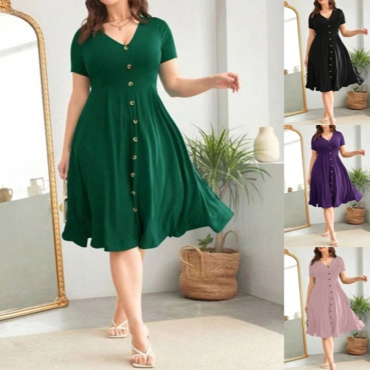 Amazon TikTok Pas Duoduo Perdagangan Luar Negeri Eropa dan Amerika Lintas Batas Pakaian Wanita Ukuran Besar Gaun Lengan Pendek Model Baru Wanita Model Panjang Sedang