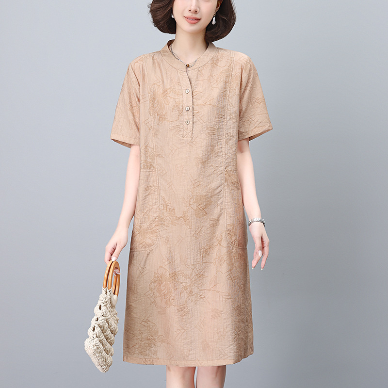 Tencel gaun musim panas 204 baru menutupi perut longgar ukuran besar kemeja gaya Barat gaun temperamen ibu rok kasual
