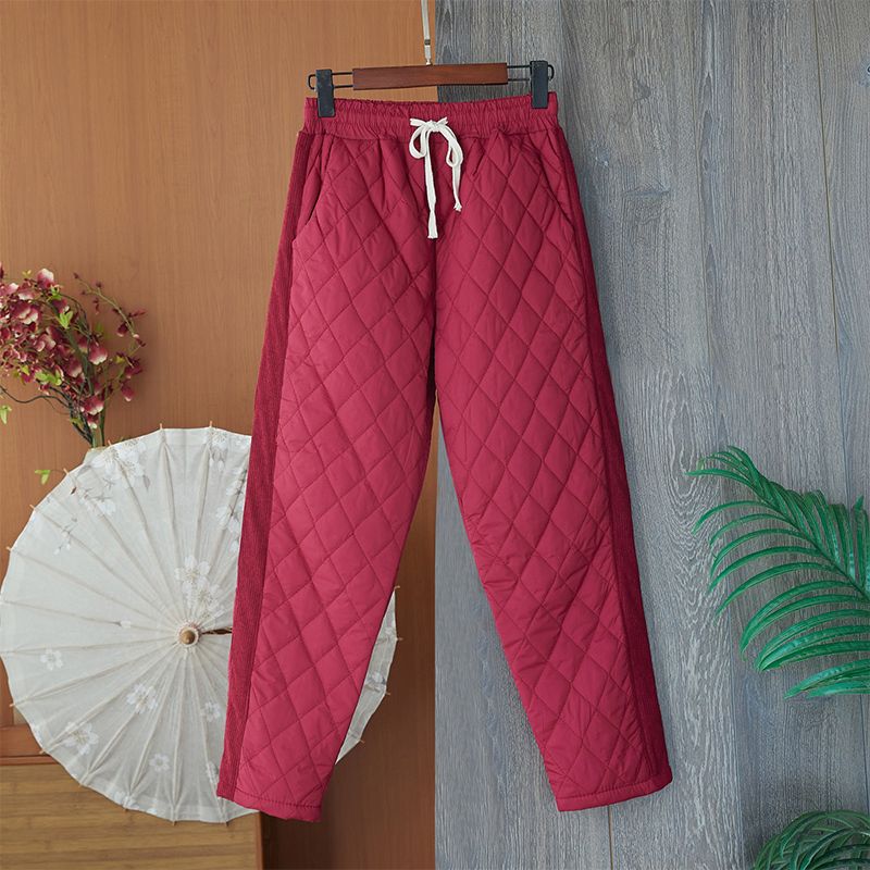Pakaian Wanita Ukuran Besar Gaya Barat Anti Dingin Celana Katun Berkotak Berlian Model Baru Musim Gugur dan Musim Dingin Celana Modis Tetap Hangat Tahan Angin Celana Kasual Longgar