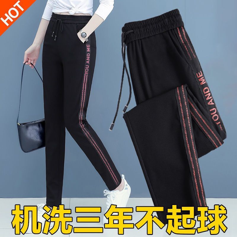 Celana panjang kasual musim gugur dan musim dingin wanita ukuran besar gaya Barat longgar pelangsing pinggang tinggi serbaguna celana panjang siswa olahraga berlapis bulu