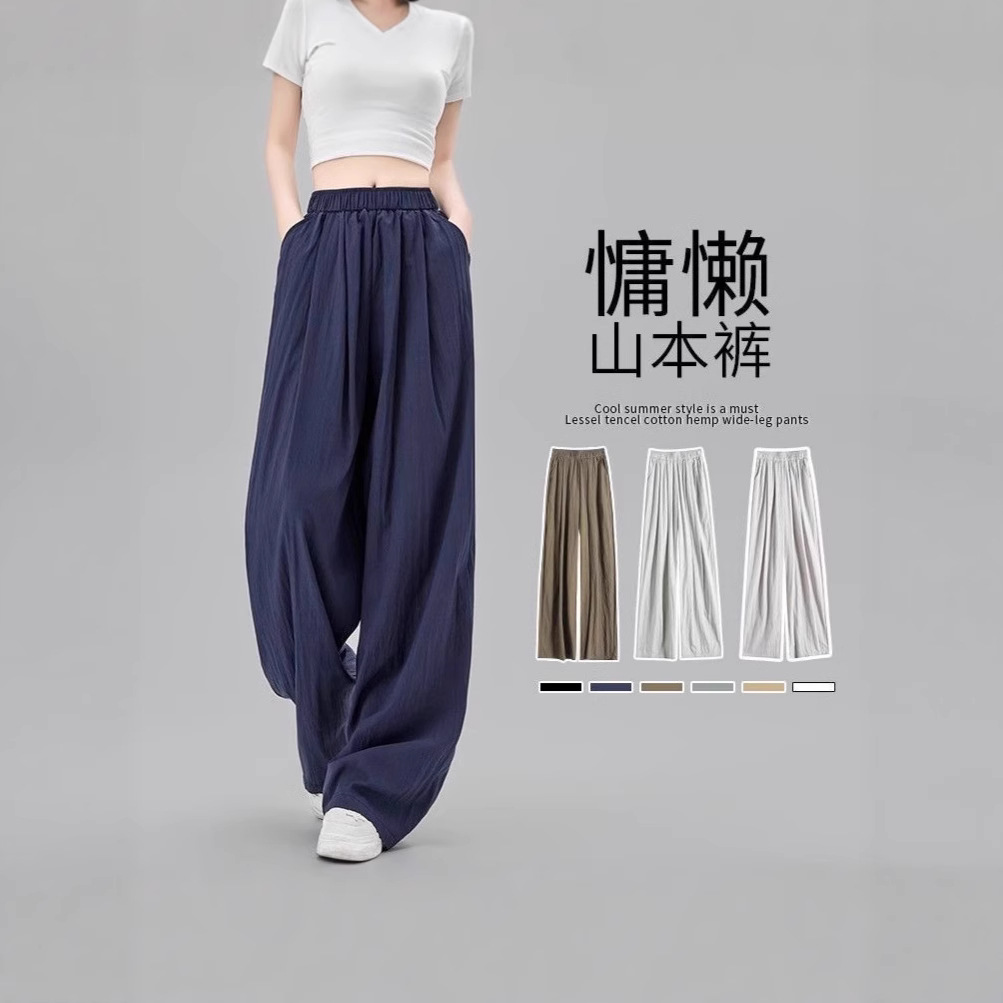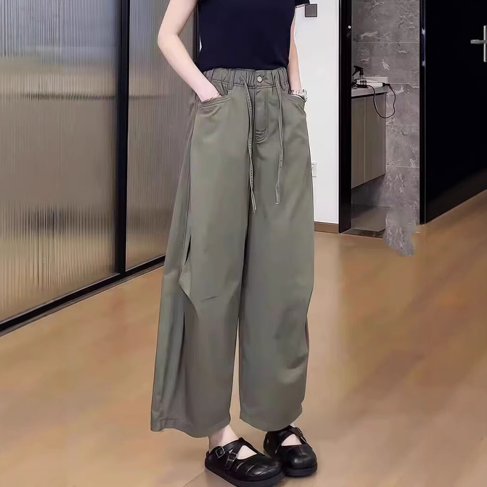 Celana Kaki Lebar Sutra Es Model Tipis Model Baru Musim Panas 2025 Lurus Kasual Jepang Gaya Jatuh Longgar Wanita Celana Longgar
