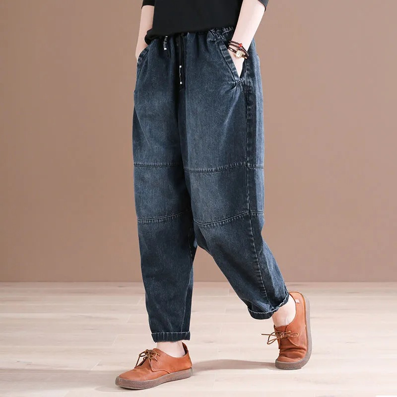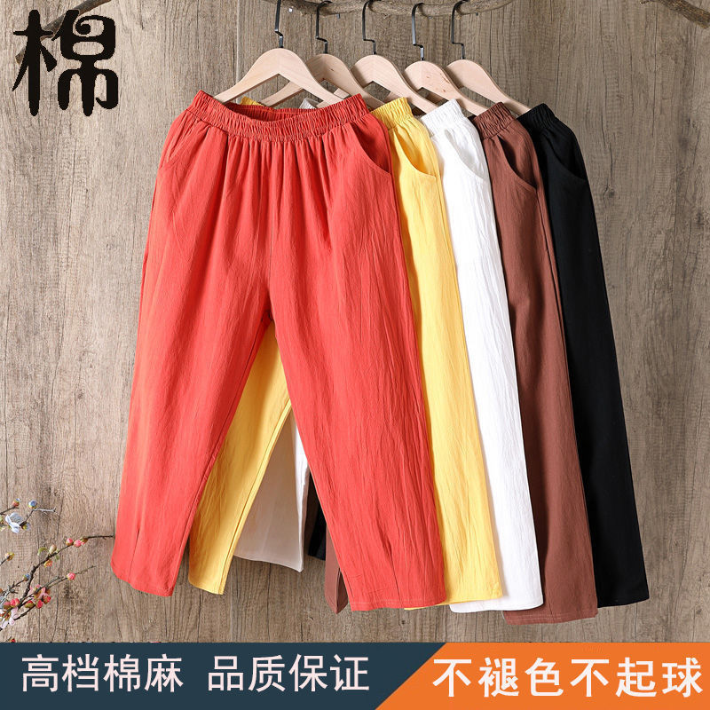 Celana harem katun dan linen celana wanita longgar tipis musim semi dan musim panas celana kasual ikat pergelangan kaki ukuran besar pelangsing celana panjang pergelangan kaki celana lobak