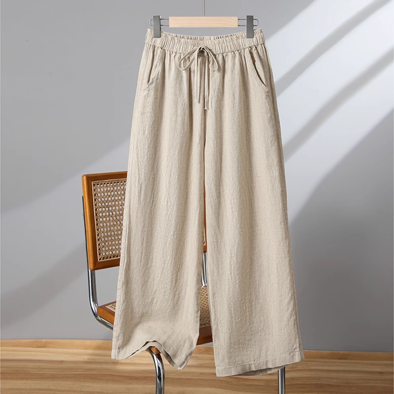 Celana Lurus Katun Linen Mudah Dipadu Padan Dipakai Luar Celana Kulot 9/10 Gaya Menggantung Pinggang Tinggi Model Baru Musim Panas Wanita Celana Kasual Linen Ukuran Besar