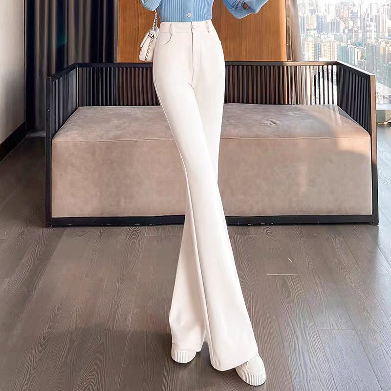 Celana Terompet Warna Aprikot Luar Terlihat Langsing Pinggang Tinggi Wanita Terlihat Langsing Celana Terompet Kasual Mudah Dipadu Padan Ramping Elastis Model Baru Tahun 2025