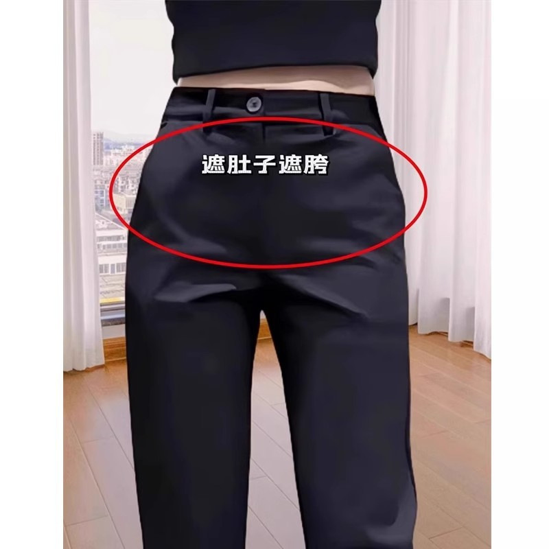 Celana Sedan Hitam Bentuk Tubuh Pir Celana Tabung Asap Lurus 9/8 Tubuh Kecil Terlihat Ramping Menutupi Daging Ukuran Besar Model Tipis Musim Panas Wanita