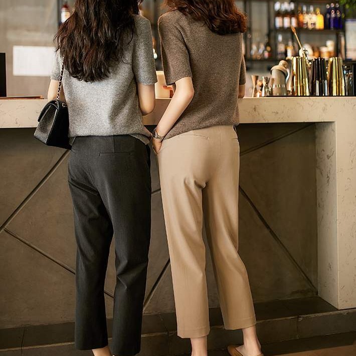 Celana setelan wanita musim panas, celana potong ramping, celana kasual tipis, celana pipa profesional kecil ukuran plus musim panas