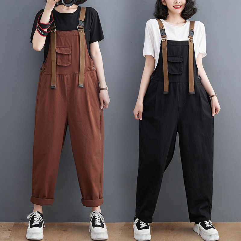Celana Suspender wanita, celana musim semi pelangsing satu potong, celana suspender longgar ukuran besar, celana crop kasual anak perempuan 2024 baru