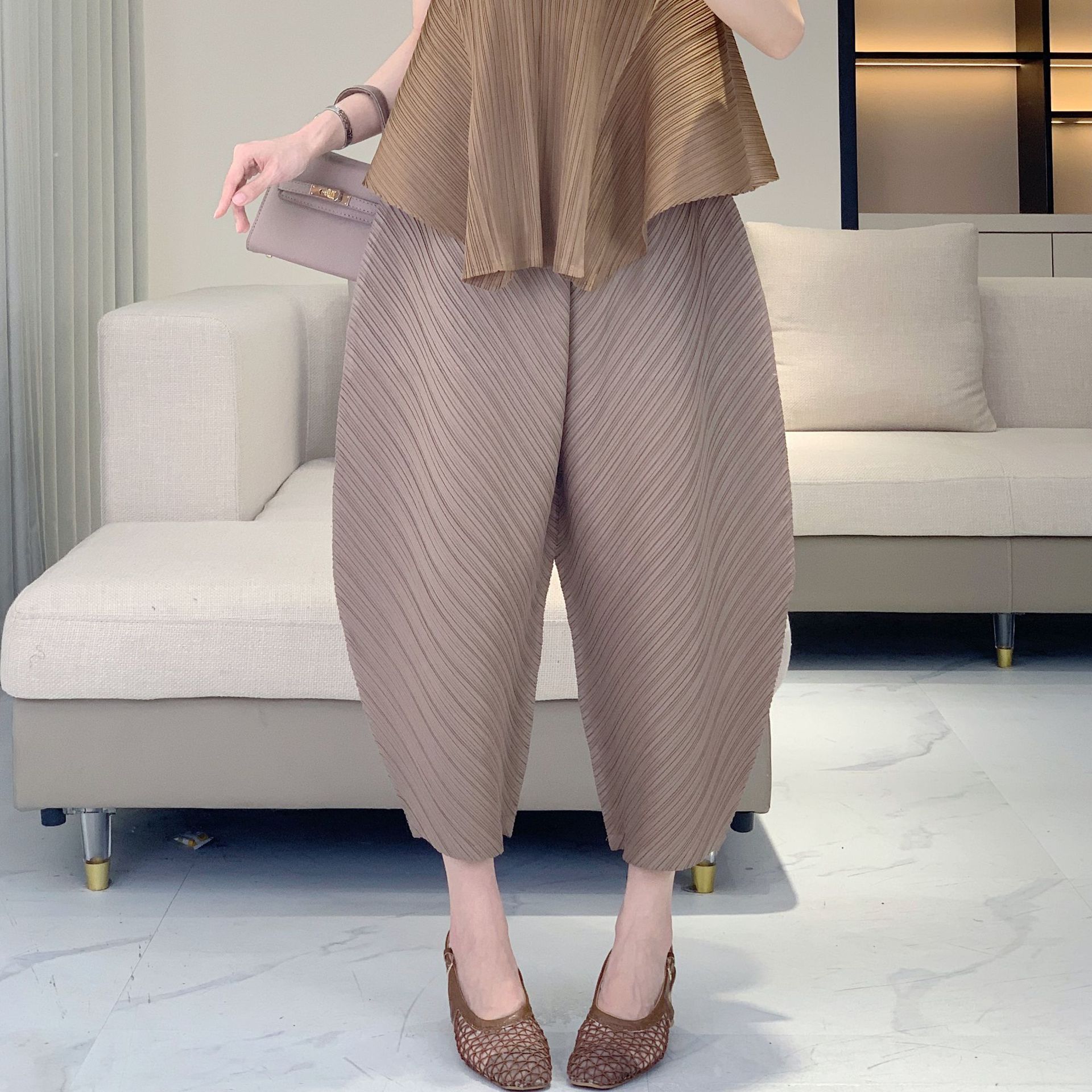 Miyake Lipit 2025 Model Baru Musim Panas Terlihat Kurus Mudah Dipadu Padan Celana Harem Lobak Ukuran Besar Longgar Wanita