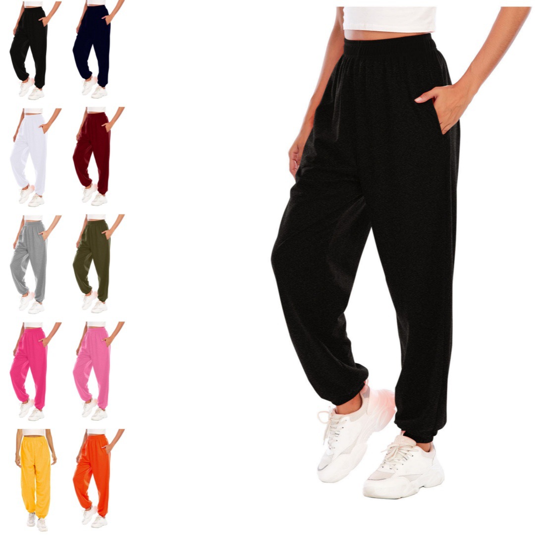 Amazon Cross-Border Wanita Celana Olahraga Sol Bundel Eropa Amerika Celana Jogging Olahraga Pinggang Tinggi Celana Kasual Longgar Dengan Kantong