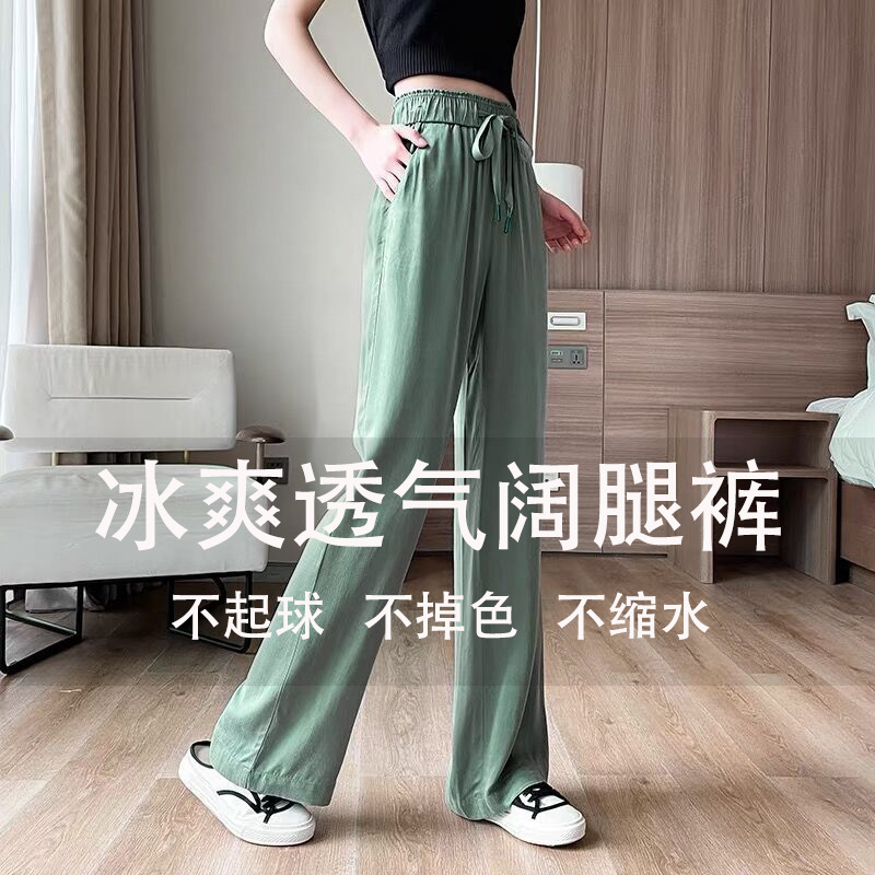 Celana kaki lebar wanita, bawahan sutra es putih chubby tipis ukuran besar pinggang tinggi menggantung pelangsing setelan lurus musim panas