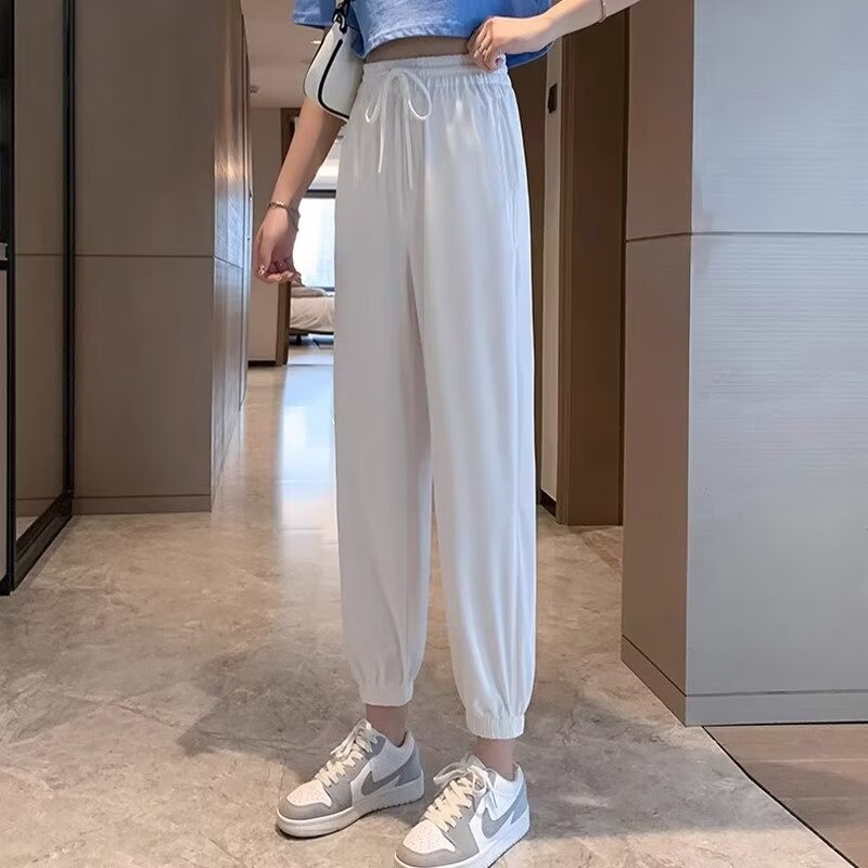 Celana olahraga wanita tipis musim panas, celana kasual ikat pergelangan kaki wanita ukuran plus, celana gemuk baru 2023, celana longgar modis Instagram, celana olahraga untuk wanita